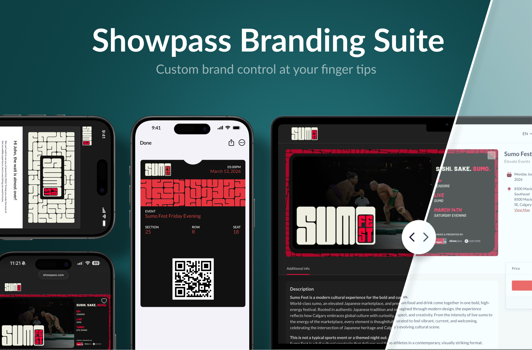 The Showpass Branding Suite is your central place to control how your brand appears across every customer touchpoint on Showpass — from event pages and checkout, to wallet passes and transactional emails. Set it once, and your brand identity flows everywhere your customers interact with your events. The Showpass Branding Suite covers three key areas: